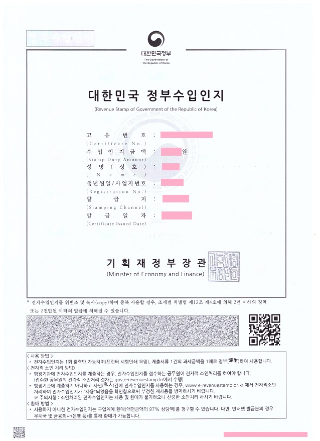 하지만 요즘에는 보다 편리하게 바뀌어서 전자수입인지를 사고, 그 전자수입인지를 첨부하면 됩니다. 전자수입인지는 아래 사진처럼 생겼습니다.